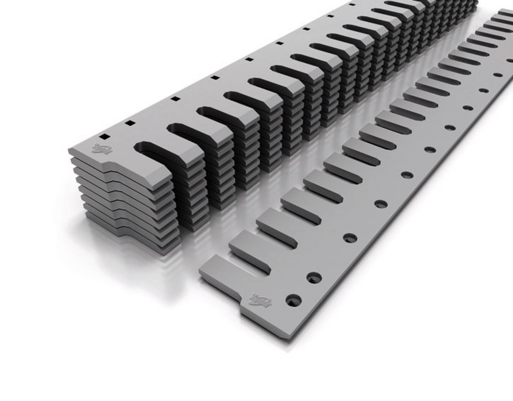 Cuchillas bases de reparacion y desgaste con medidas y especificaciones originales para reducir significativamente los tiempos muertos del equipo.
