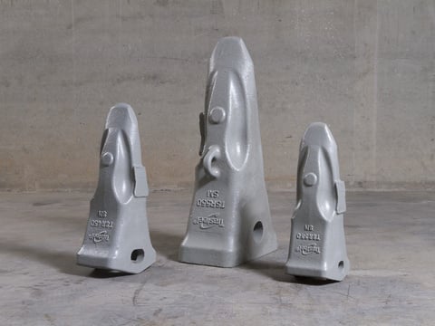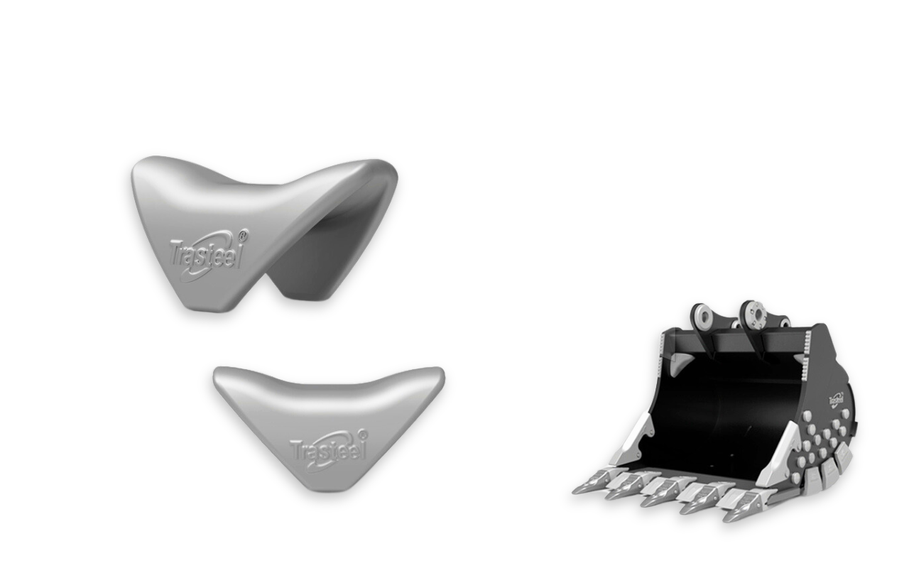TRASTEEL a desarrollado diseños exclusivos que aportan un extra de material de desgaste alargando la vida útil del diente e incrementando la productividad y la eficiencia de nuestros diseños en los distintos trabajos de impacto y terrenos altamente abrasivos.
