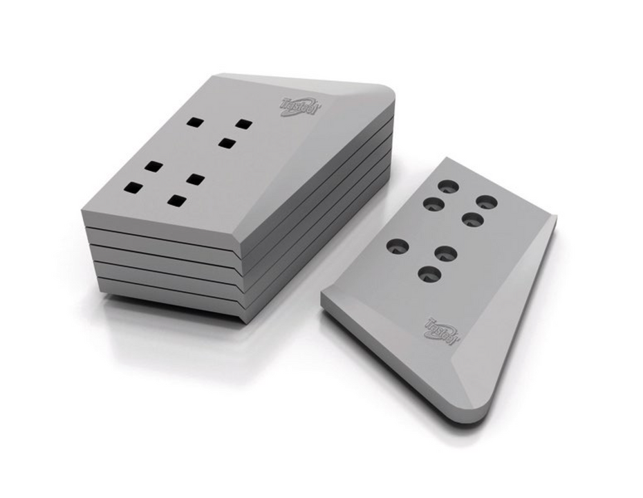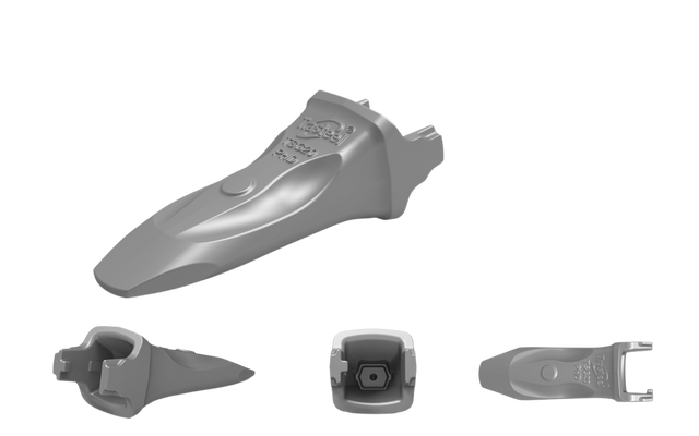 Bases, adaptadores o portadiente reforzados con material extra en las partes que tienen mayor contacto con el material, diseñadas para aumentar significativamente la duración de la base al instalar los protectores superiores wear cap (opcional) sobre la parte superior de la base.