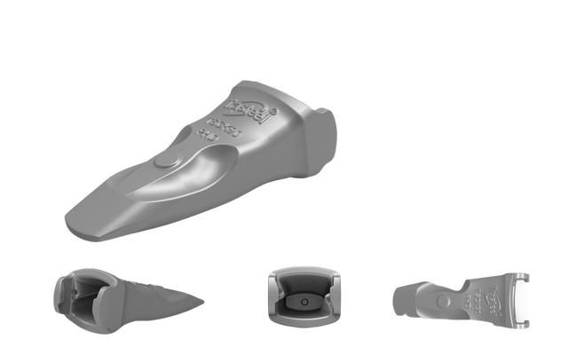los Dientes para abrasión cambian ligeramente el Angulo de ataque para proteger la base y la cuchilla del equipo así mismo el diseño especial TRASTEEL ofrecen un nervio central muy reforzado para prolongar la vida útil del diente.